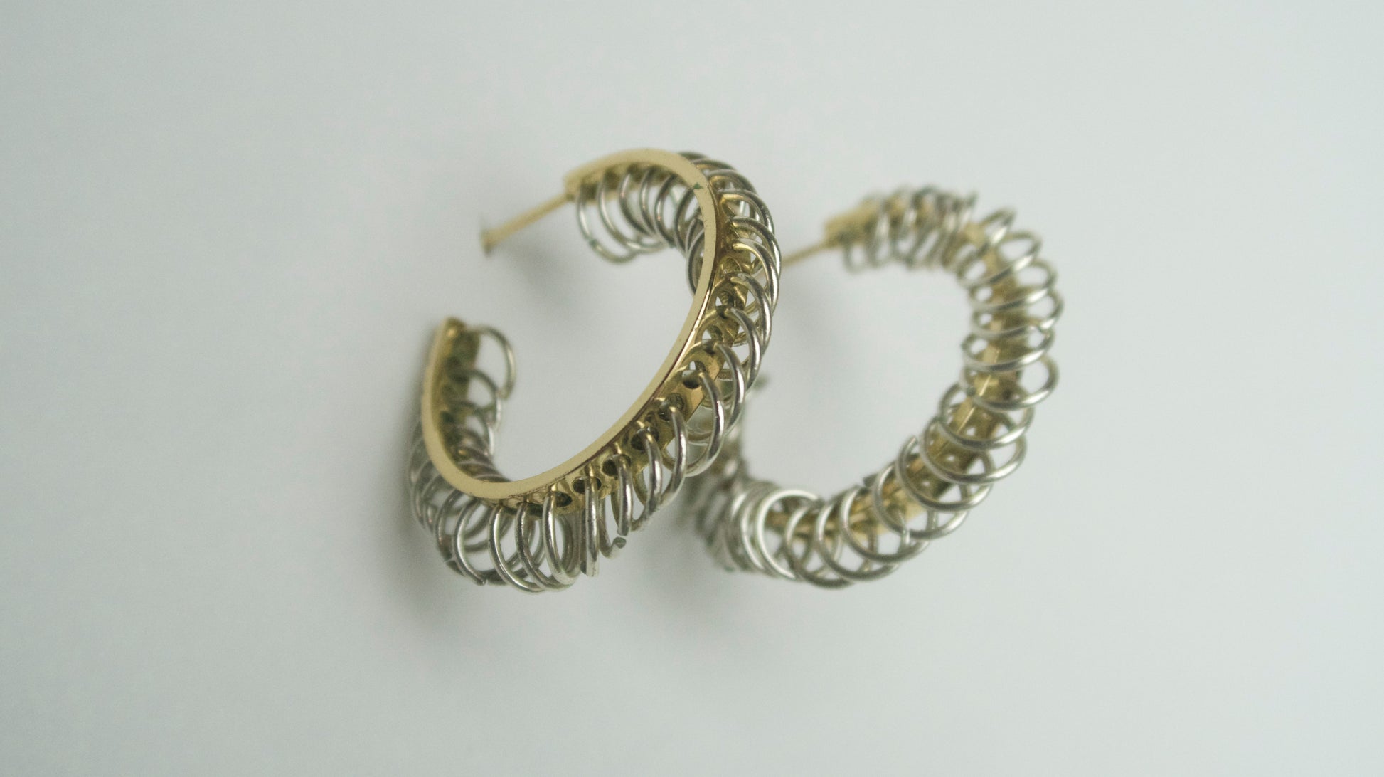 The HALAZONI Earrings intertwining metals fused together create an eye-catching statement piece that evokes conversation.